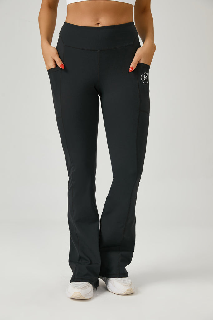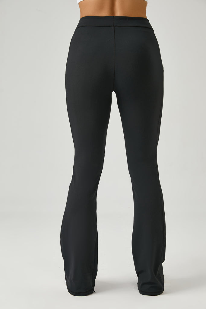 Experience the fusion of style and comfort with the Black Flare Legging, the trendiest activewear piece on the market. These leggings feature a skinny waistband, flared leg with a front split, and a versatile design perfect for pairing with any top. Ideal for workouts and daily wear, you'll look and feel fabulous in these leggings.