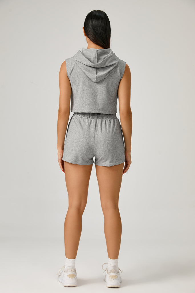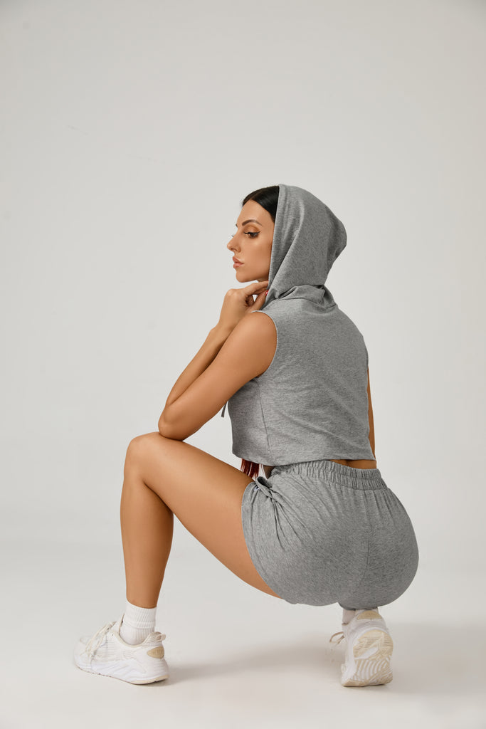 Upgrade your chill time wardrobe with our High-Waist Sweat Shorts, a chic and versatile piece made for lounging or on-the-go activities. The customized grey color adds a touch of uniqueness to your look, while the high waist and soft fabric ensure ultimate comfort. Pair it with our hooded tank for the ultimate off-duty cool outfit.