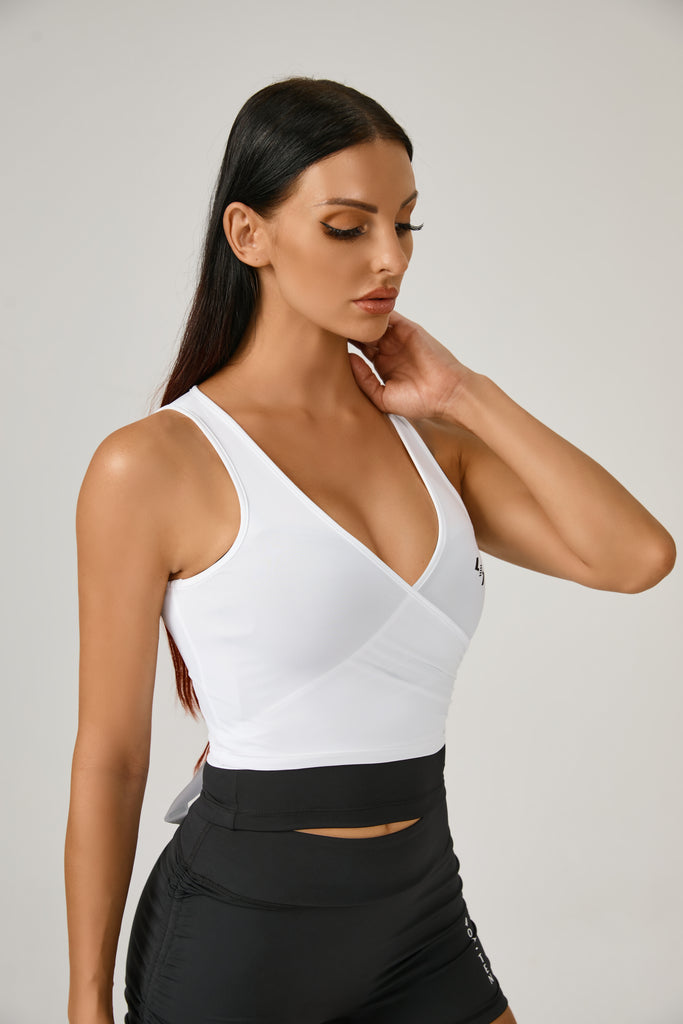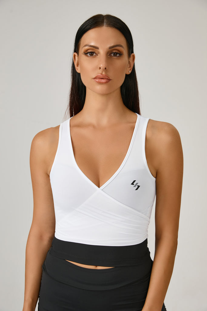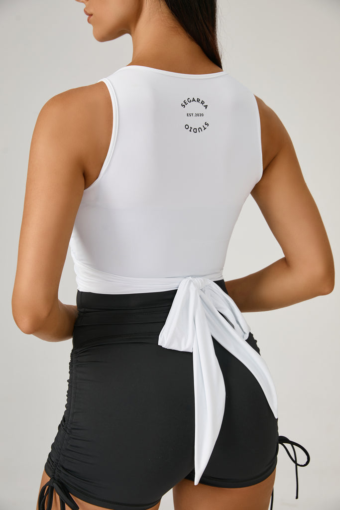 Upgrade your style game with the Wrap Front Vest, designed for the fashion-forward woman who dares to be different. The cooling fabric, V-neck design, and casual wrapping options make this piece perfect for turning heads both in and out of the studio. Pair it with a bomber or half-zip hoodie for an effortlessly chic look that's perfect for any occasion.