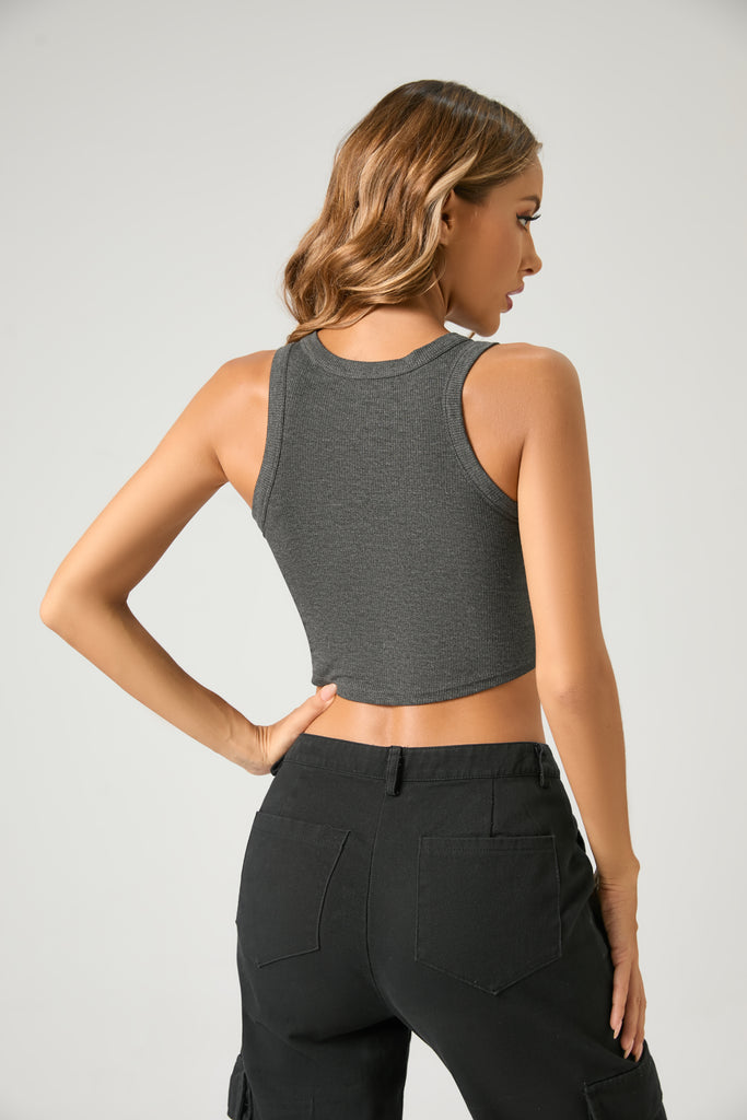 Soft Gray Icon Ribbed Tank for Casual Comfort