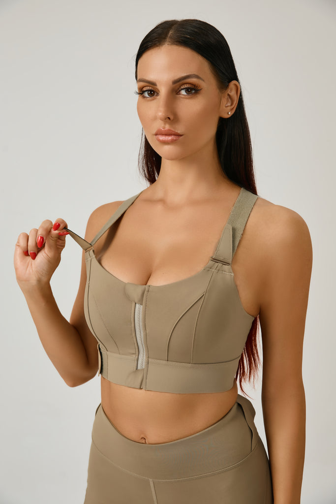 Green Front Zip Adjustable Sports Bra - High-Impact Activewear