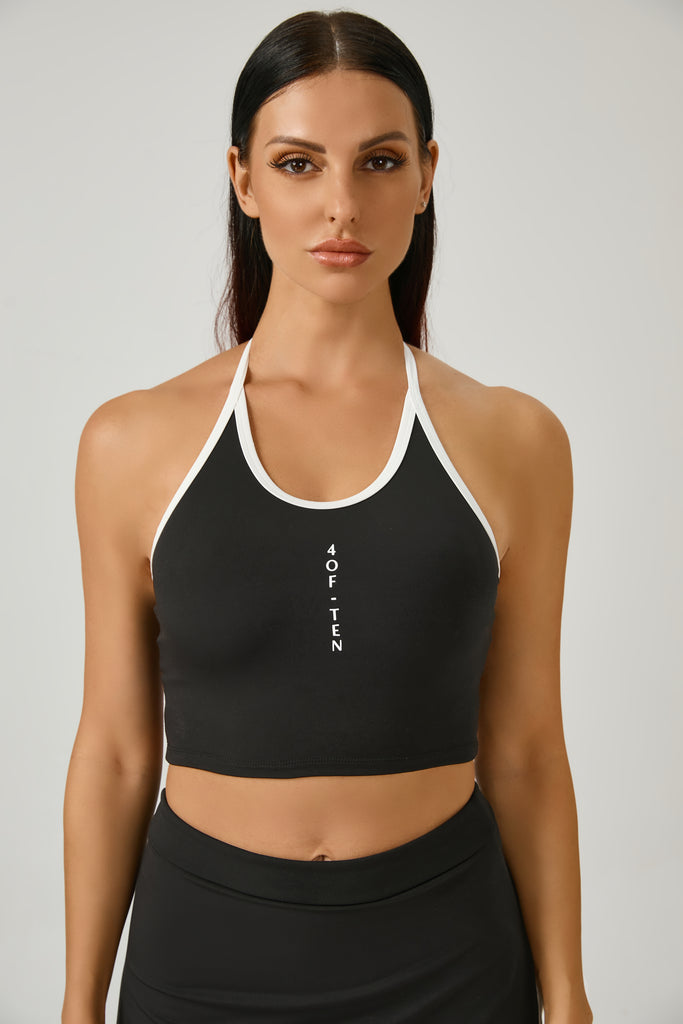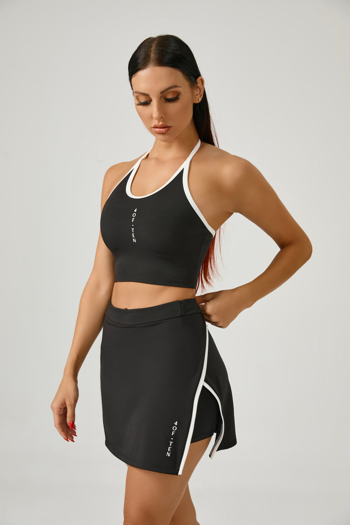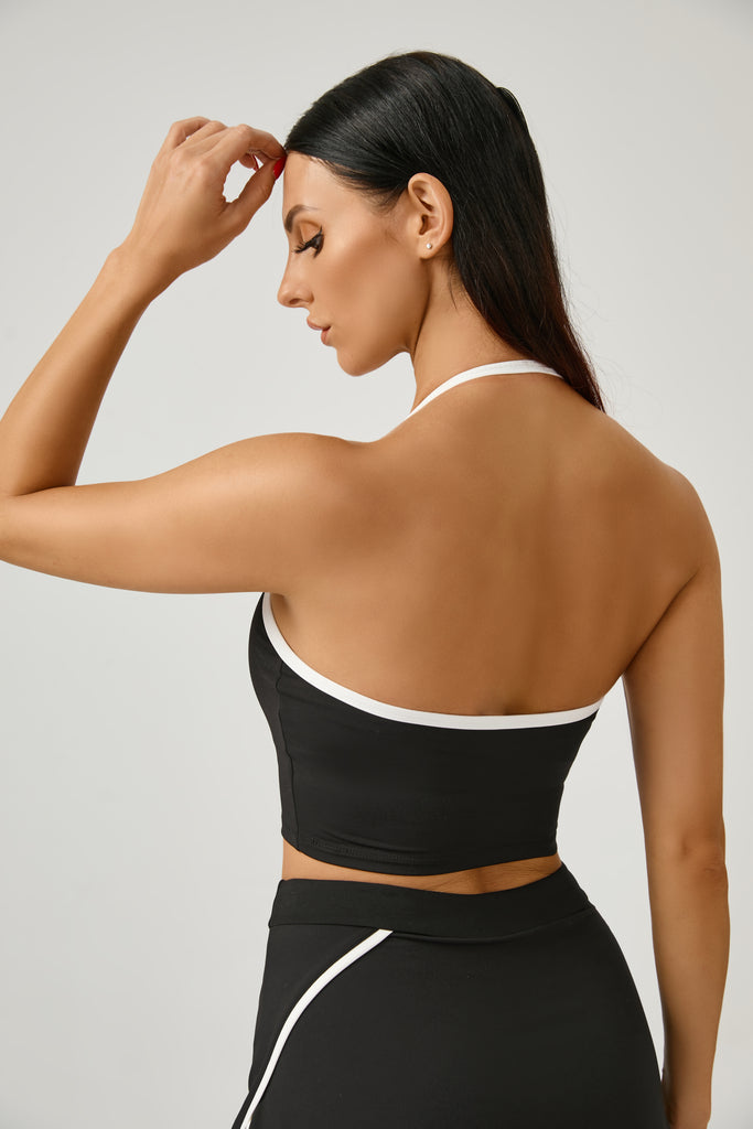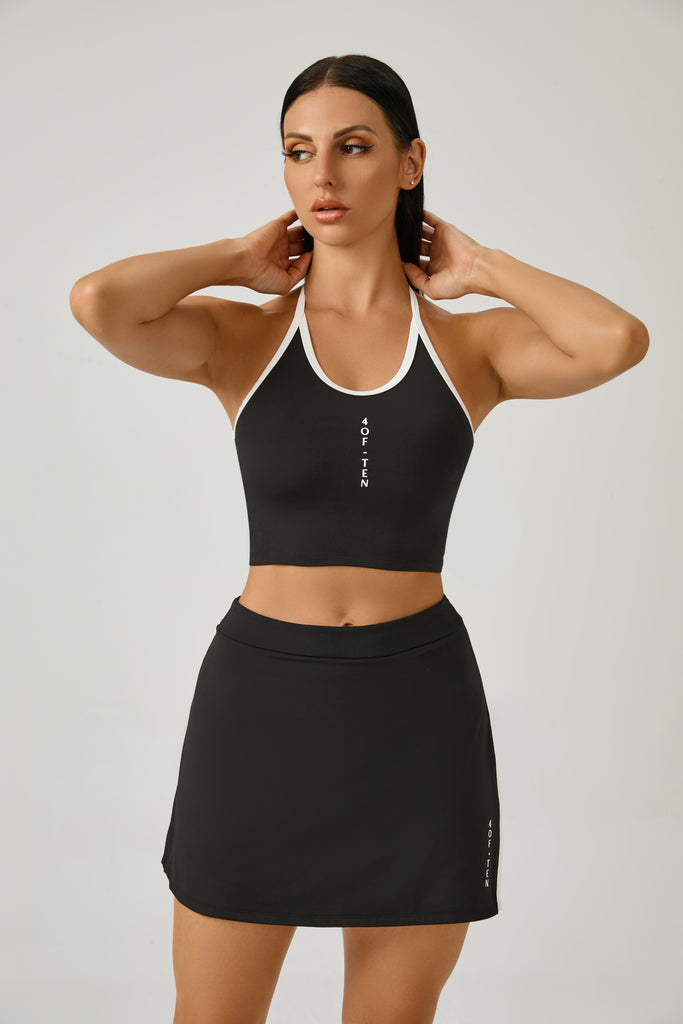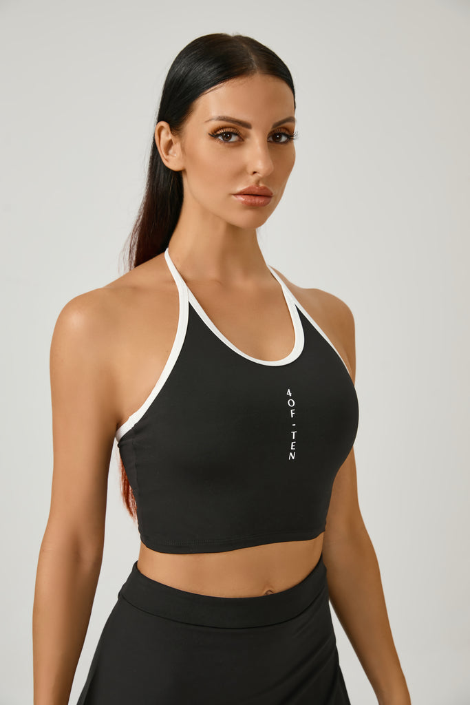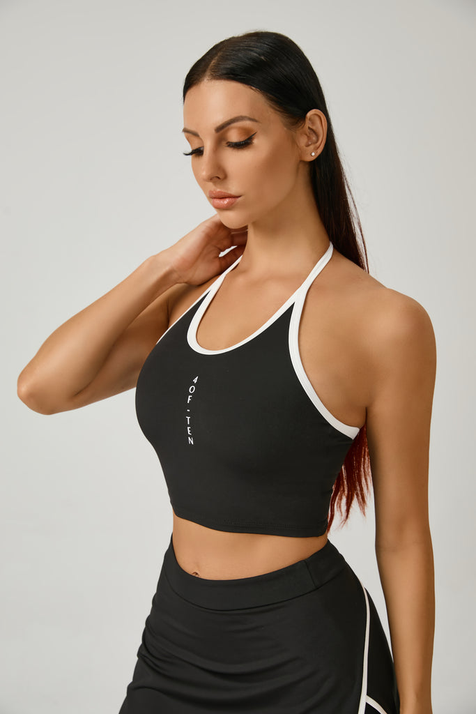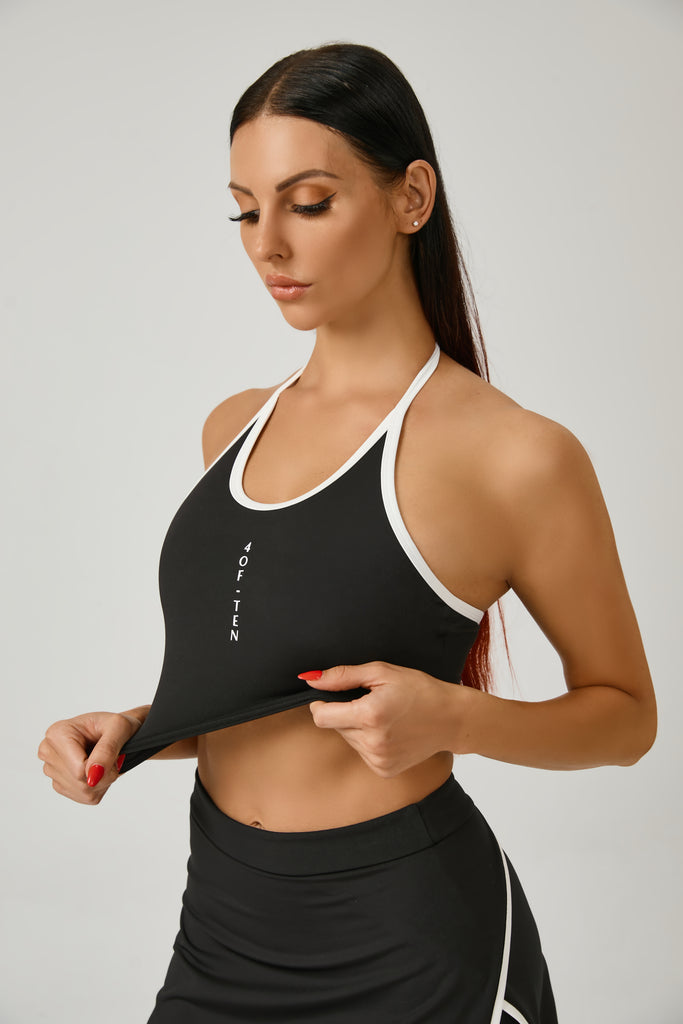 Step up your game with the Tennis Girl Halter Sports Bra, designed to be your tennis skirt's best friend. This stylish cropped sports bra features a classic black and white contrast, shelf-bra lining, and a cropped halter silhouette that keeps you cool during those intense matches. Made with smooth and soft 4Tania fabric, it's perfect for transitioning from studio to street, empowering you to perform at your best anywhere, anytime.
